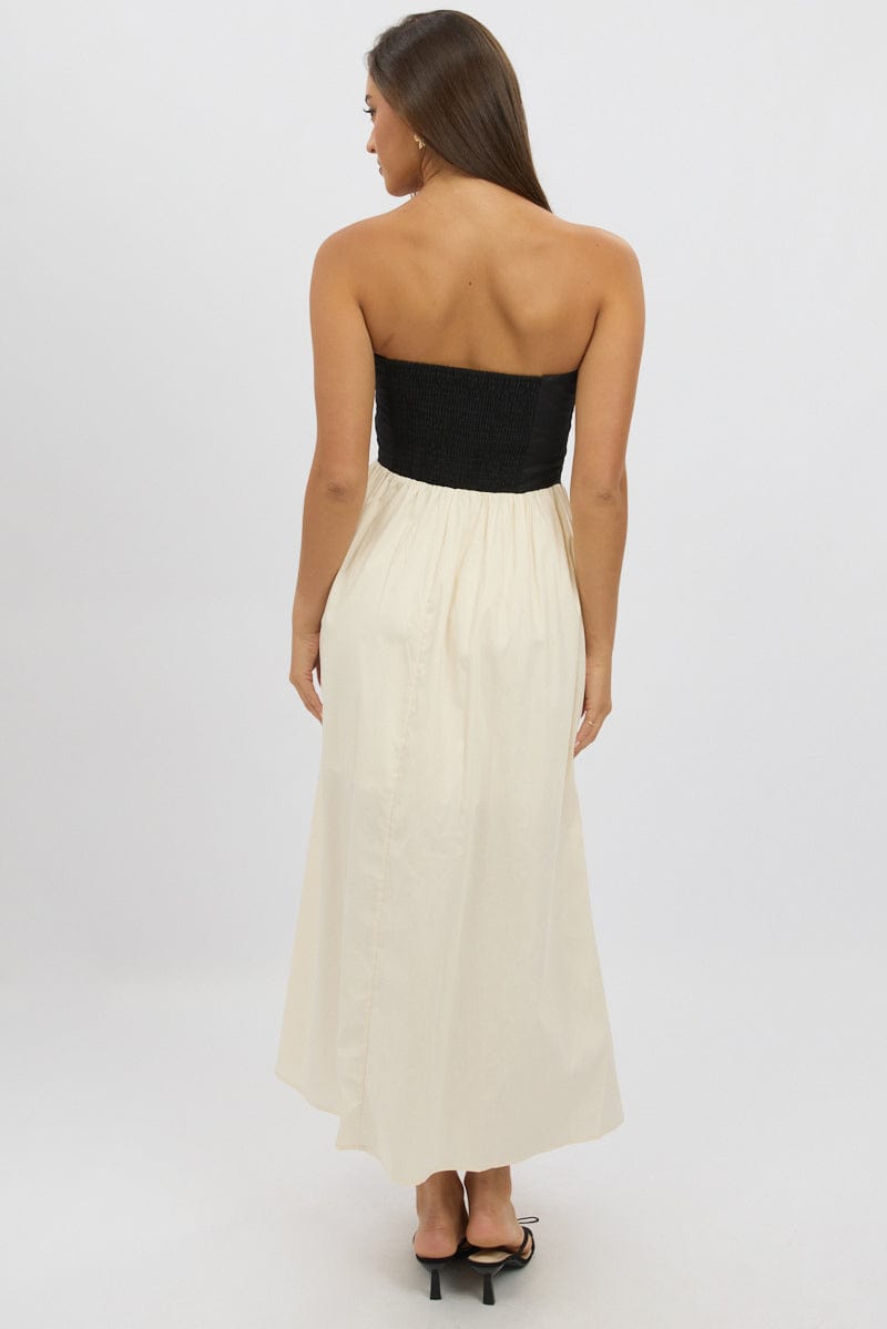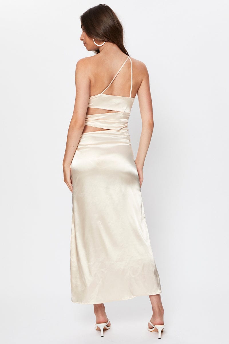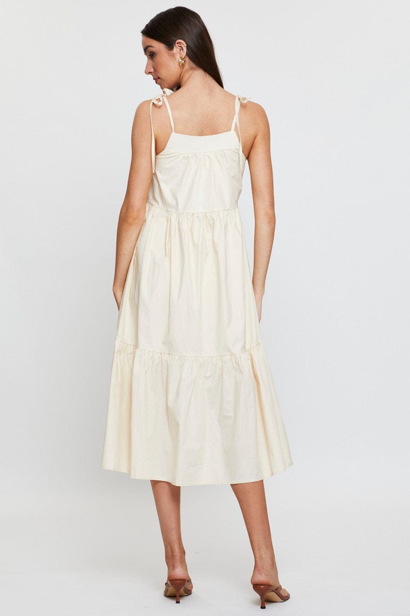 Beige Midi Dress Sleeveless Tie Shoulder -